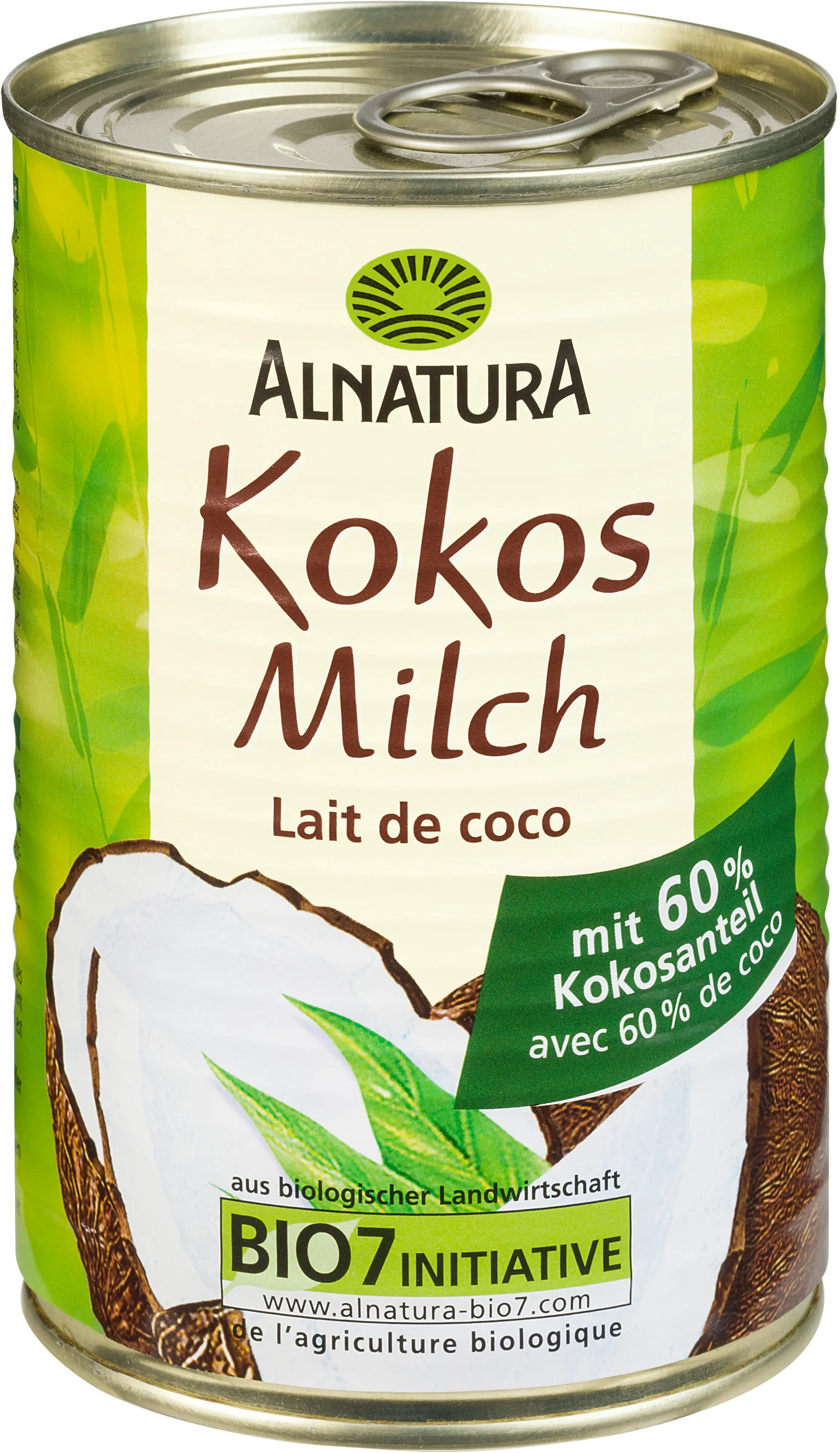 La leche de coco de Alnatura aporta a los platos, especialmente a los asiáticos, una nota delicada y exótica. El alto contenido de coco del 60 % garantiza un sabor especialmente intenso. Ideal para cualquier preparación, la leche de coco también se puede utilizar para cócteles o postres de coco.