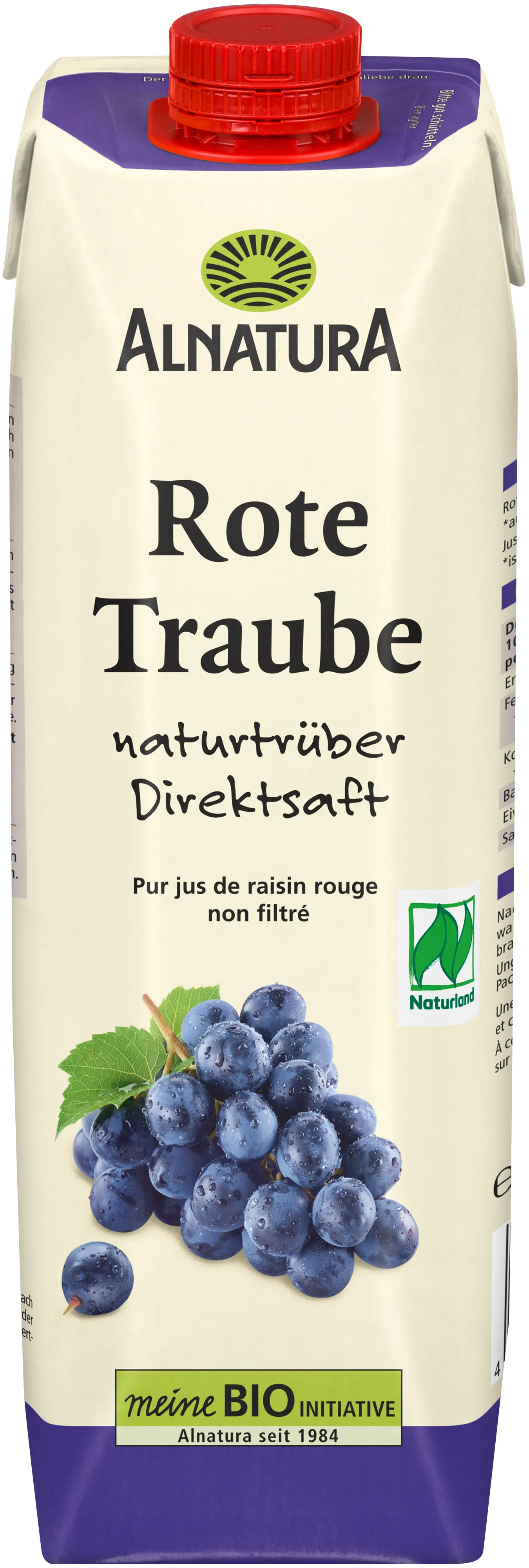 El zumo biológico sin filtrar de Alnatura está hecho de uvas rojas italianas de calidad orgánica cultivadas de acuerdo con las pautas de Naturland. Excelente tanto puro como diluido, no deriva de zumo concentrado y además es sin filtrar, por lo que tiene un aspecto turbio.