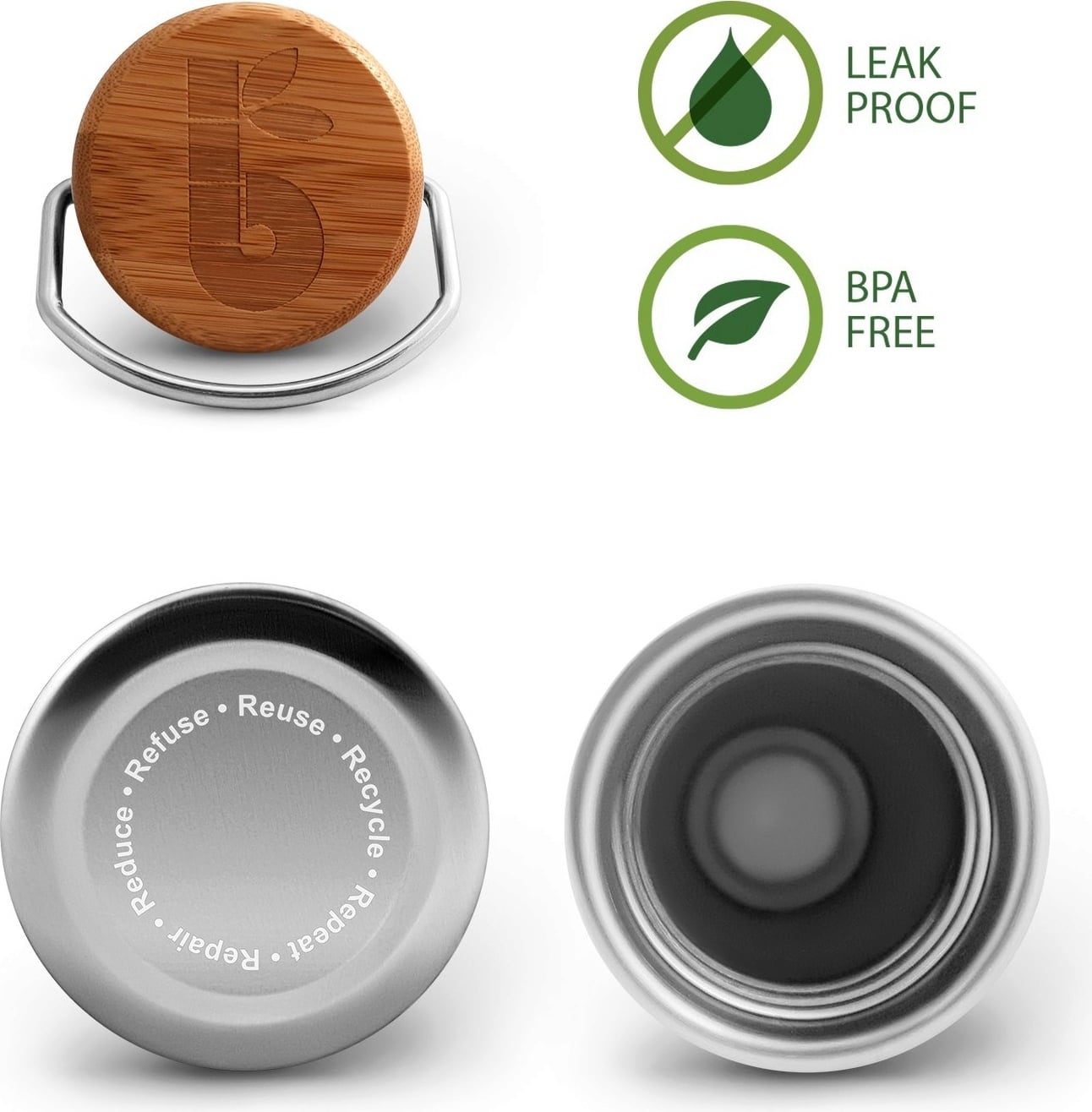 ¡Esta botella es la compañera perfecta para tu vida diaria! Ya sea para hacer deporte, en la oficina, en el colegio o para ir de excursión. Está fabricada en acero inoxidable, tiene un tapón de rosca de bambú a prueba de fugas y luce un diseño atemporal y sencillo. La botella no contiene sustancias químicas nocivas y puede limpiarse fácilmente con un cepillo para botellas después de usarla.