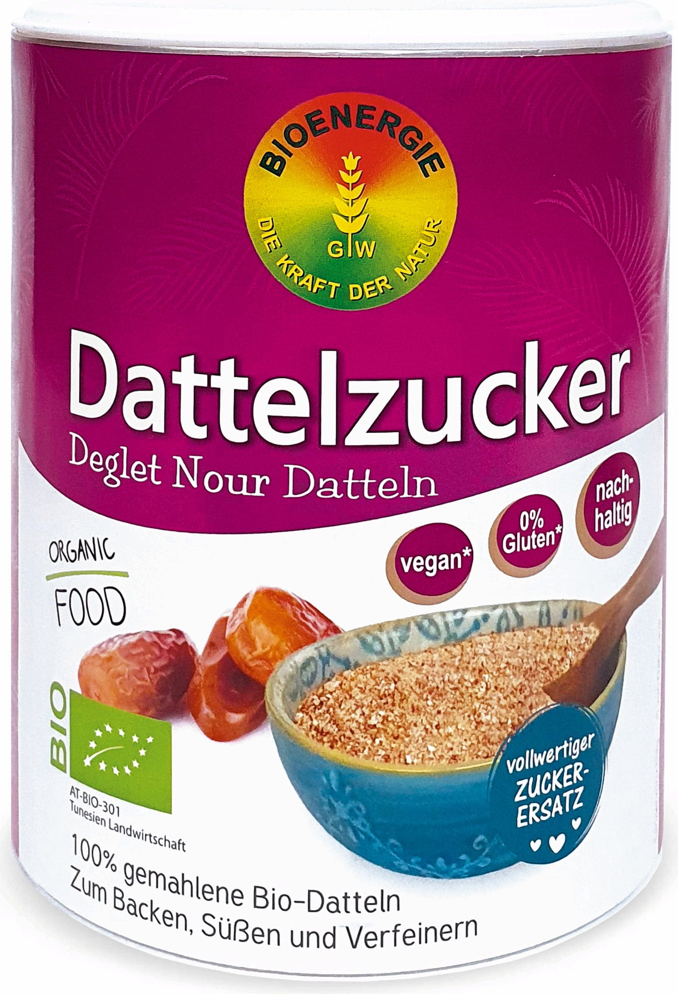 Los dátiles pueden utilizarse perfectamente para hornear, endulzar y refinar platos, ofreciendo una excelente alternativa al azúcar convencional. Bioenergie obtiene sus dátiles de Túnez (dátil Deglet Nour). Allí maduran en condiciones óptimas hasta convertirse en delicias de dulzor suave, para luego ser cosechados a mano, secados y molidos. Los dátiles poseen un sabor propio delicado que recuerda al caramelo. En la cocina ayurvédica y oriental, el azúcar de dátil es especialmente popular y se utiliza con frecuencia. Su contenido natural de potasio y magnesio es uno de los muchos beneficios presentes.