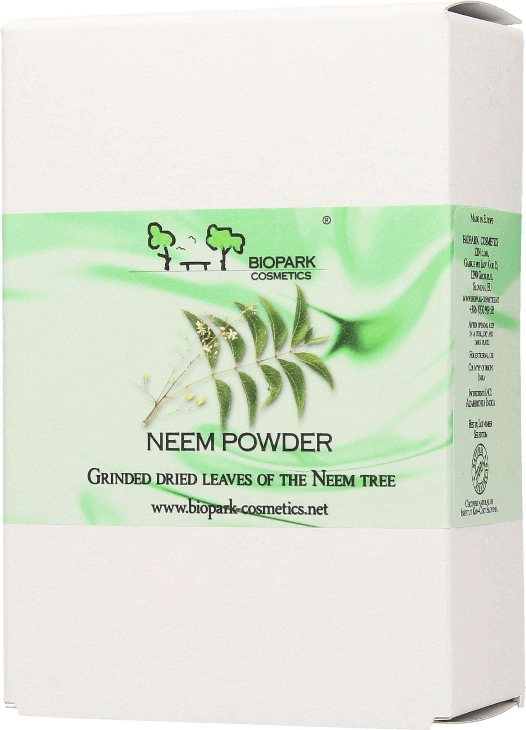 Estos polvos se preparan con las hojas secas y molidas de árbol de neem de la India. Su color es verde y tiene un aroma delicado, un tanto especiado. El neem se utiliza como desodorante natural y tiene propiedades antisépticas y antifúngicas. También aleja insectos y proporciona atención eficaz contra los piojos. También el cuero cabelludo con caspa se beneficia de las propiedades de las hojas de neem.