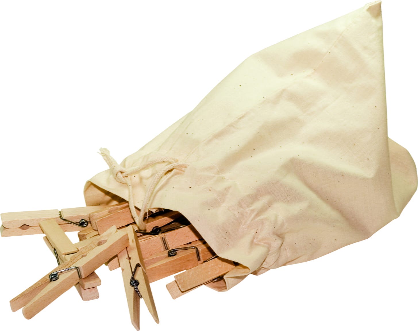 Estas grandes y resistentes pinzas para la ropa de madera de haya garantizan una sujeción especialmente buena en el tendedero. Los fuertes resortes en espiral son inoxidables. Las pinzas están disponibles con o sin bolsa de tela de algodón para guardarlas.