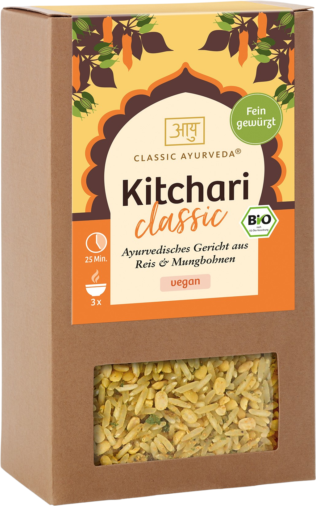 Un producto ideal para llevar a la mesa un plato ayurvédico absolutamente delicioso en el menor tiempo posible. El kitchari clásico bio de Classic Ayurveda es una sabrosa combinación de arroz, alubias mungo y verduras, condimentado con numerosas especias ayurvédicas.