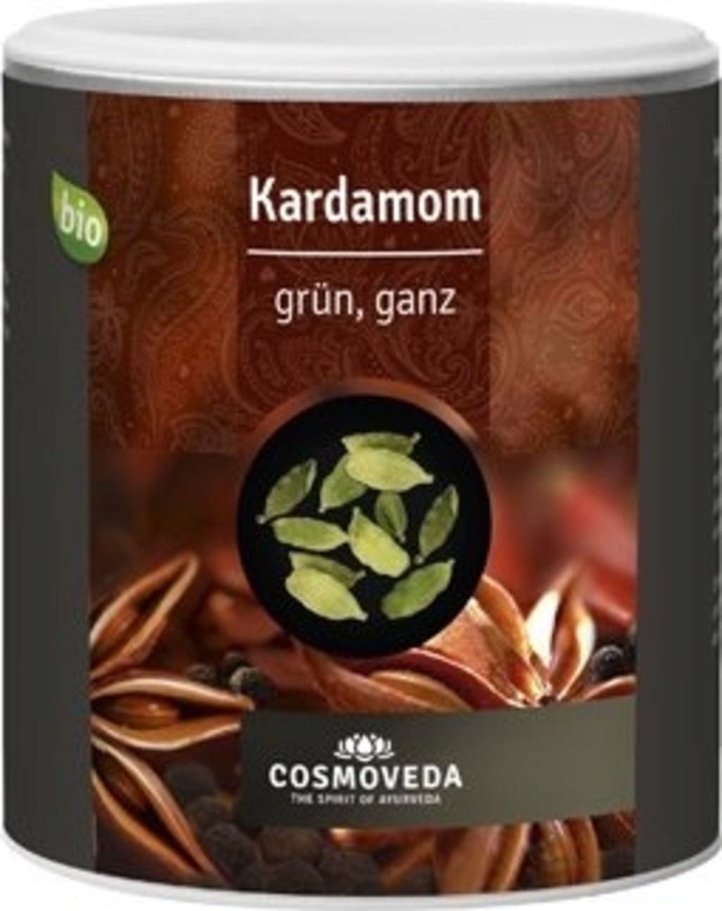 El cardamomo verde contiene semillas negras muy aromáticas que se utilizan molidas para postres, refinar bebidas, leche y café. Las semillas promueven la digestión. El cardamomo es una de las especias más antiguas y valiosas del mundo, justo después del azafrán y la vainilla. Incluso los antiguos griegos y romanos conocían esta especia. La especia proviene del sur de la India, pero hoy también se encuentra en Sri Lanka, Guatemala, Tanzania y Brasil.