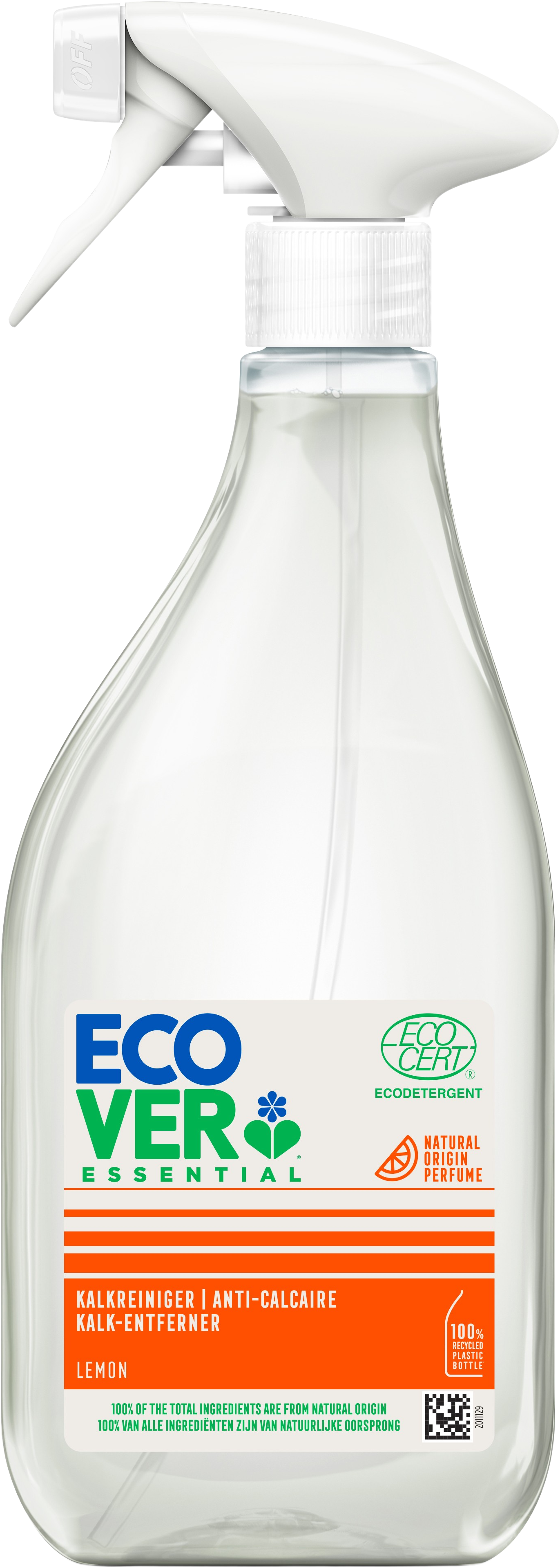 El Essential Anti-cal Limón deEcover elimina eficazmente las manchas de cal con su fórmula de ingredientes vegetales y minerales. El 100% de sus componentes tienen un origen natural.