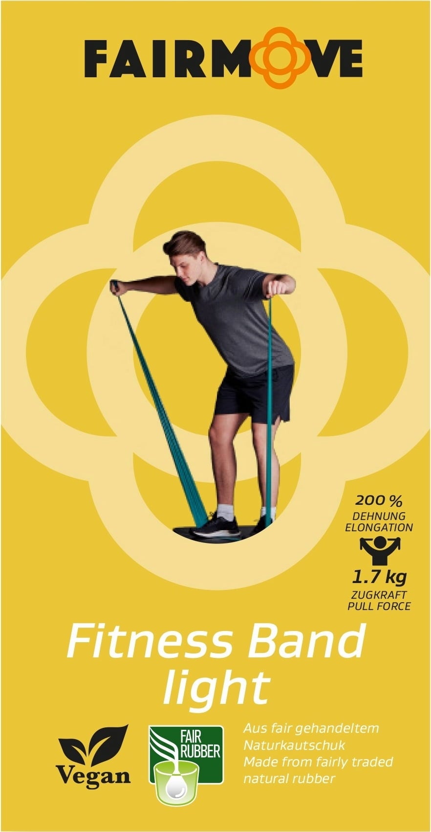 Esta banda de fitness FAIR MOVE es una herramienta versátil para estirar todo el cuerpo, desarrollar la fuerza de forma específica y mejorar el equilibrio, ideal para yoga, pilates o cualquier otro programa de fitness que te guste. Déjate convencer por la alta calidad y la resistencia al desgarro de este material robusto. No contiene plástico ni plastificantes y está fabricada al 100 % con caucho natural de comercio justo procedente de Sri Lanka. Puedes entrenar con total tranquilidad, ya que la banda es totalmente vegana y, tras un largo periodo de uso, se degrada sin dejar residuos.