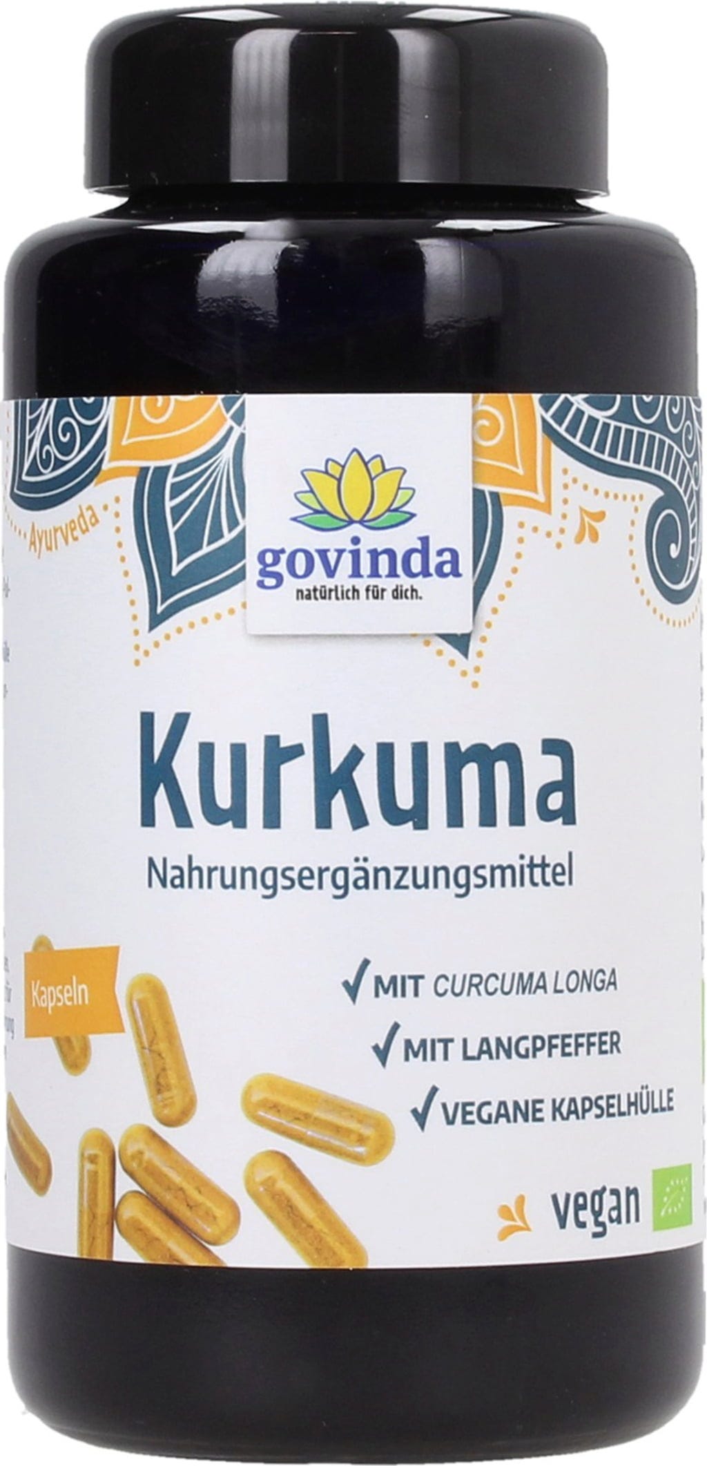Las cápsulas de cúrcuma orgánica son un suplemento ideal para el dosha Kapha. Una cápsula contiene 380 mg de Cúrcuma Longa y 20 mg de pimienta negra, y es 100% vegana, sin gluten y sin lactosa.