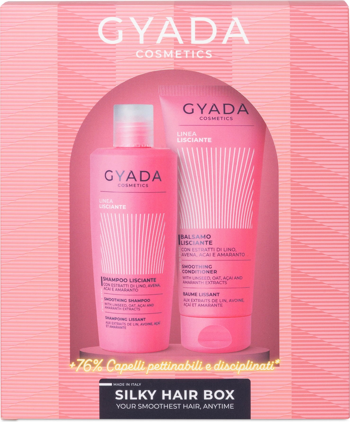 La Caja Cabello Sedoso contiene dos productos de cuidado capilar especialmente formulados para cabellos lisos. El dúo de champú y acondicionador está enriquecido con extractos de lino, avena, acai y amaranto, limpia suavemente el cuero cabelludo y desenreda el cabello. Garantiza una agradable peinabilidad y brillo.