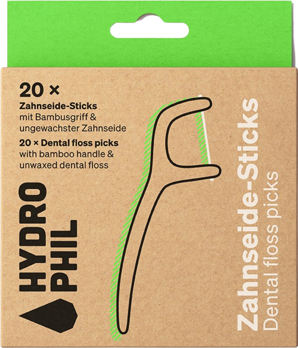 Con los palitos de hilo dental ecológico de Hydrophil, la higiene bucal se convierte en un juego de niños. Son especialmente fáciles de manipular y eliminan sin esfuerzo los restos de comida y la placa dental. El hilo dental utilizado es muy resistente al desgarro y el mango de bambú está completamente libre de plástico. Higiene bucal ecológica apta para adultos y niños.