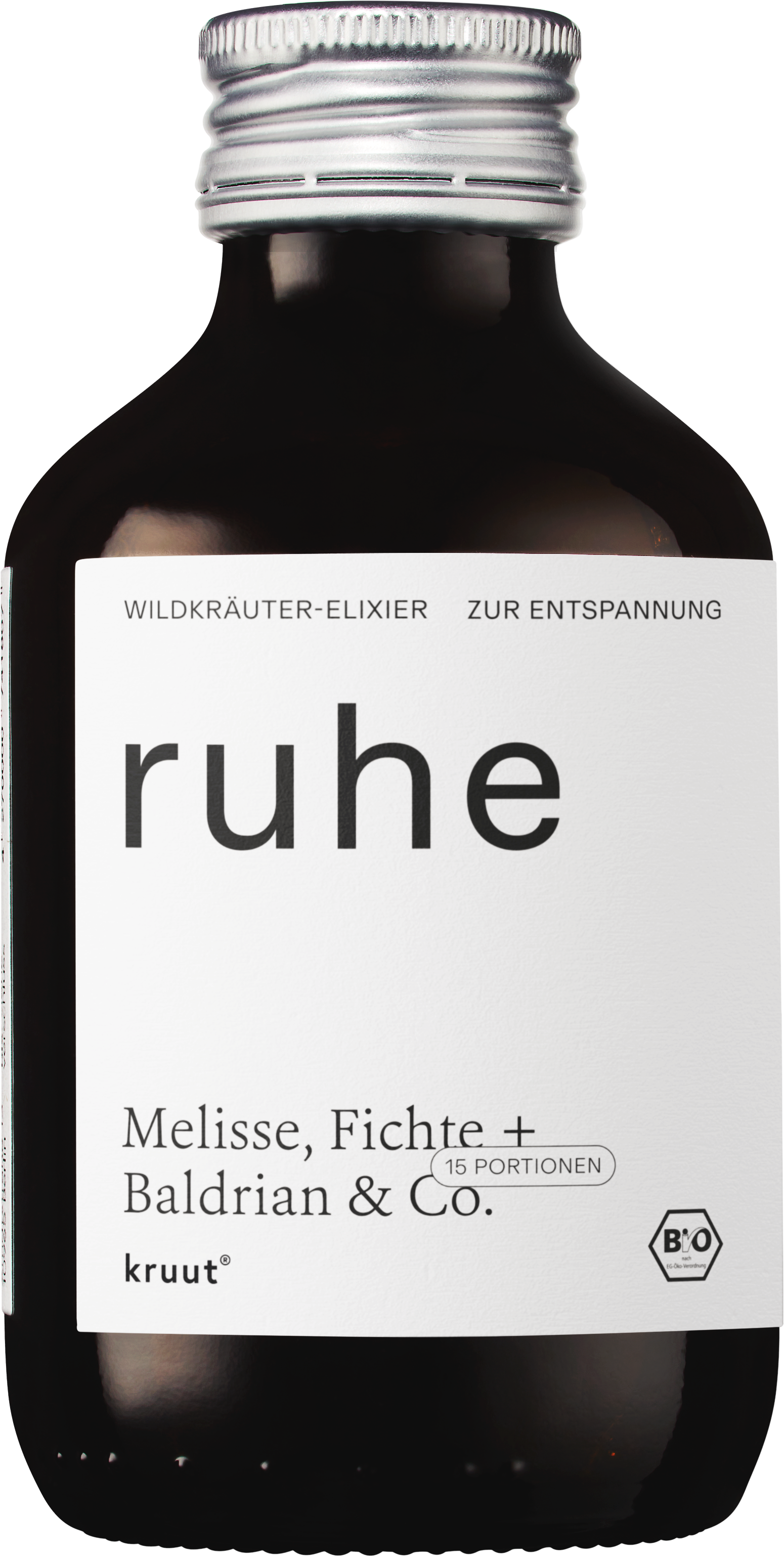 Oxymel Ruhe de kruut combina melisa, avena, raíz de valeriana y brotes de abeto rojo. Esta variedad es ideal para tomar antes de acostarse o durante la meditación.
