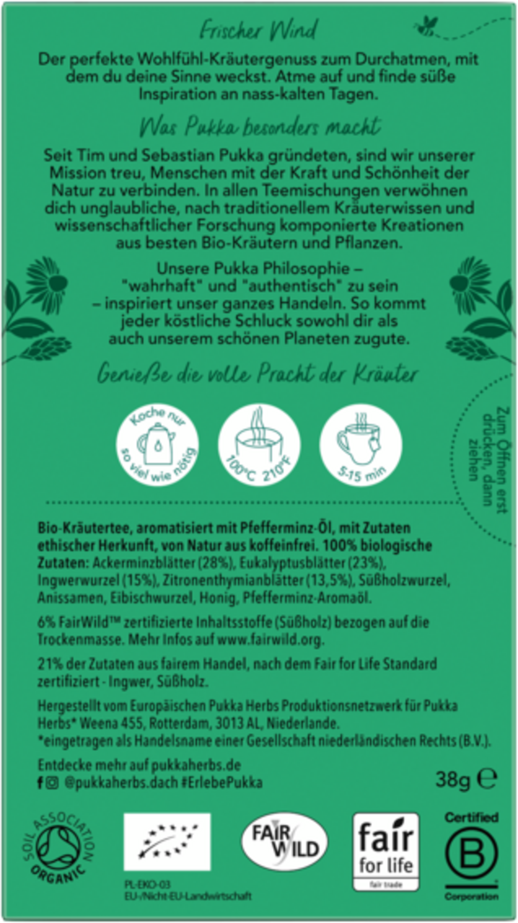 | Fabricante: | Lipton Teas and Infusions Germany GmbH, Axel-Springer-Platz 3, c/o WeWork, 20355, Hamburg, Alemania, kontakt@pukkaherbs.de |