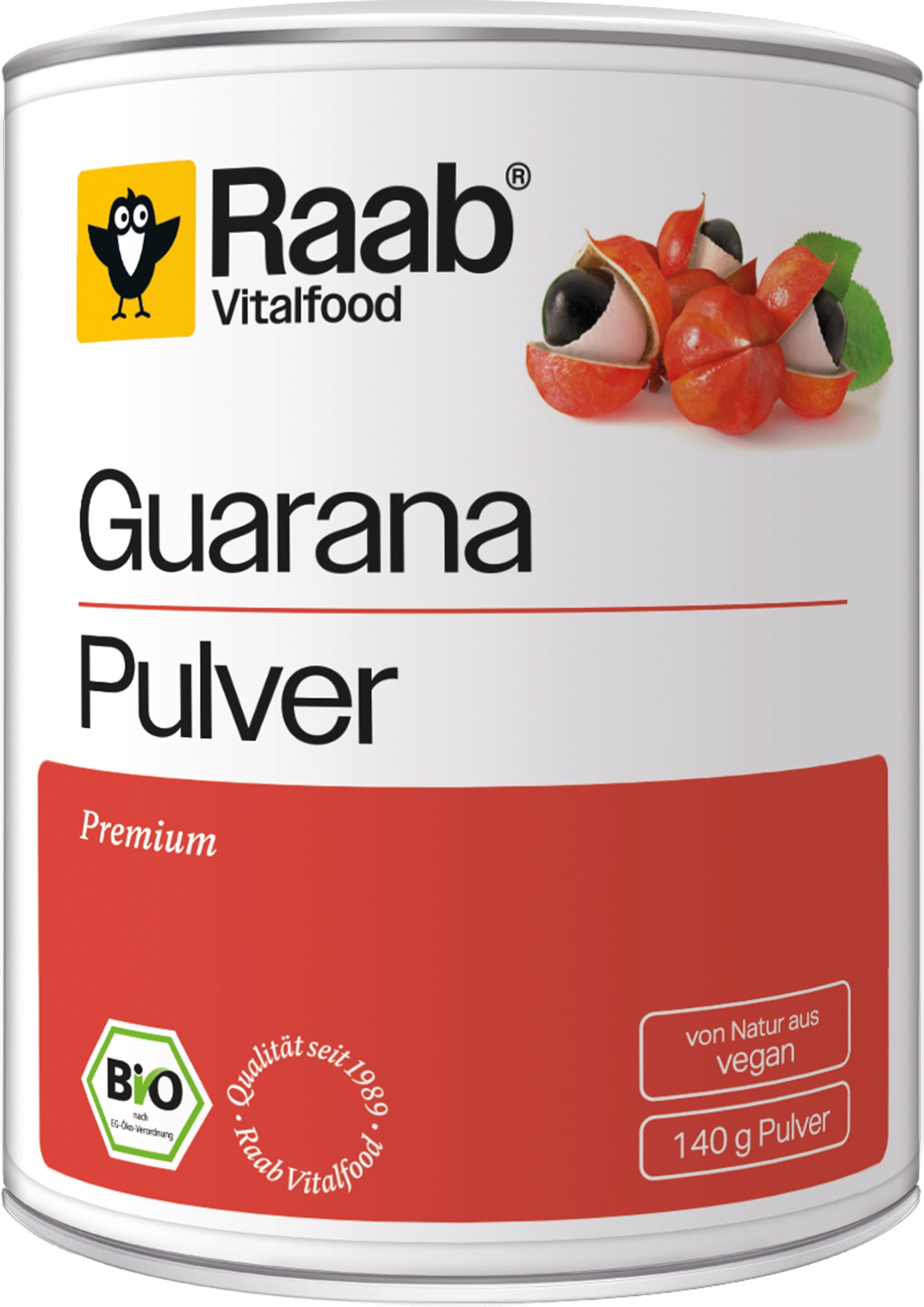El guaraná de Raab Vitalfood es un polvo finamente molido, obtenido de bayas de guaraná procedentes del proyecto de cultivo ONCA en el Río Negro, Brasil. Secadas al sol y sin tostar, estas bayas tienen un contenido natural de cafeína.
