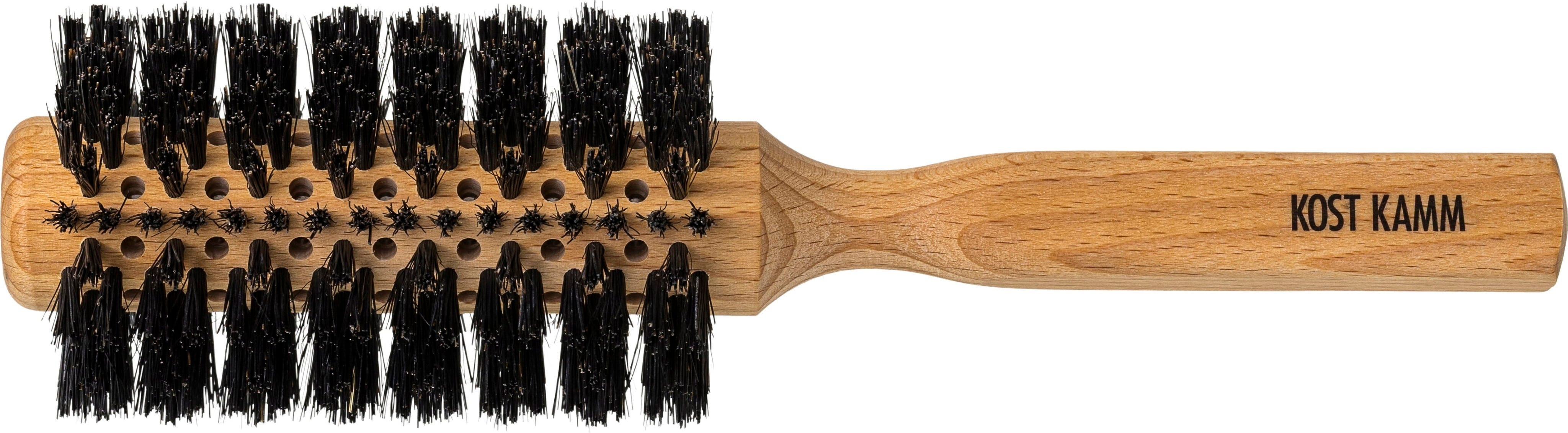 La Cepillo Redondo es ideal para el secado con secador. El mango de madera de haya perforado está equipado con cerdas de jabalí.