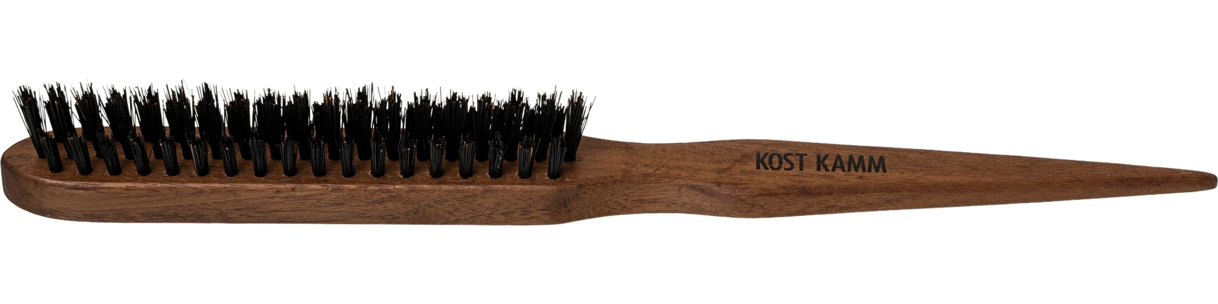 El cepillo Sleek Brush se caracteriza por un mango de madera estilizado y 3 filas de cerdas de jabalí.