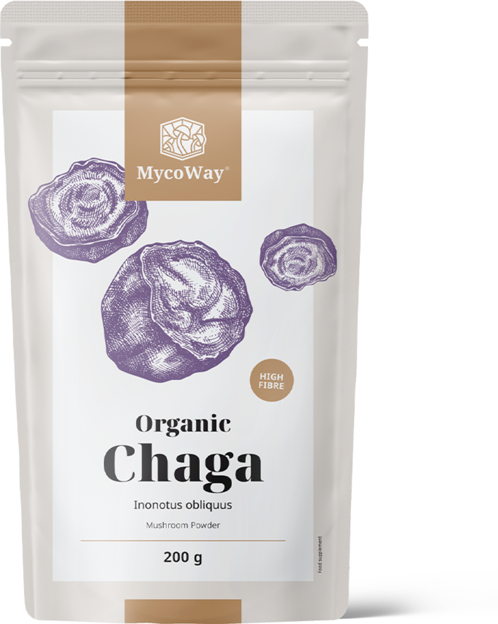 El polvo de chaga ecológico de MycoWay se obtiene a partir de hongos chaga (Inonotus obliquus) cuidadosamente secados y finamente molidos, que crecen en los árboles de las regiones frías. El delicado proceso de elaboración preserva los componentes naturales del hongo, dando como resultado un polvo fino, fácil de integrar en tu rutina diaria. Ya sea que lo añadas a bebidas calientes, batidos u otras recetas, este polvo aporta un ingrediente natural a tu cocina. Su sabor delicado lo convierte en un complemento versátil para tus platos.