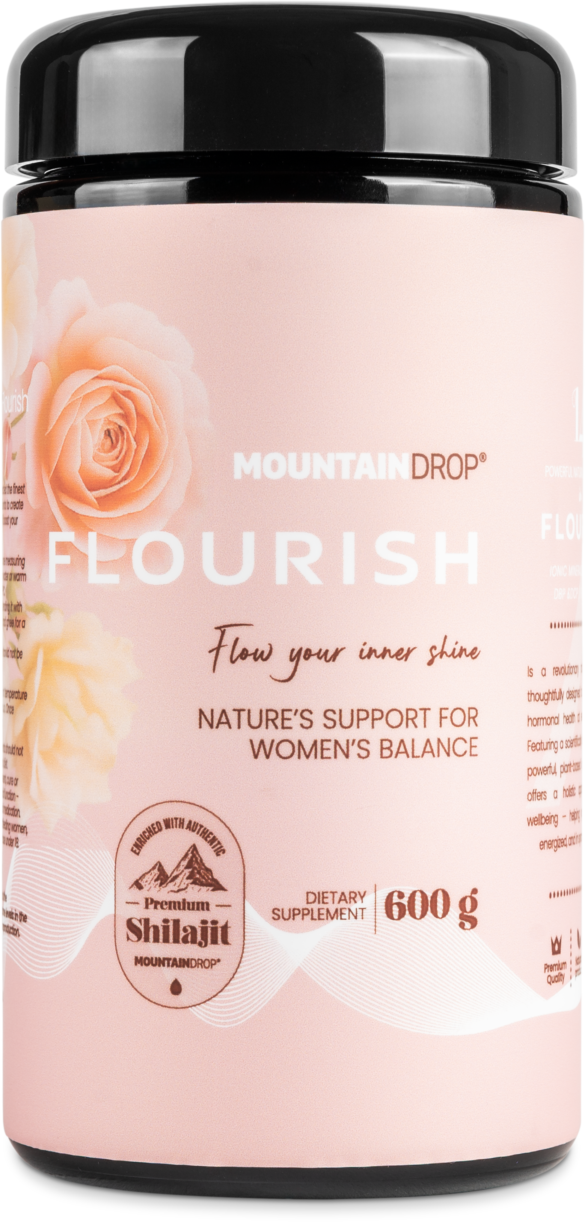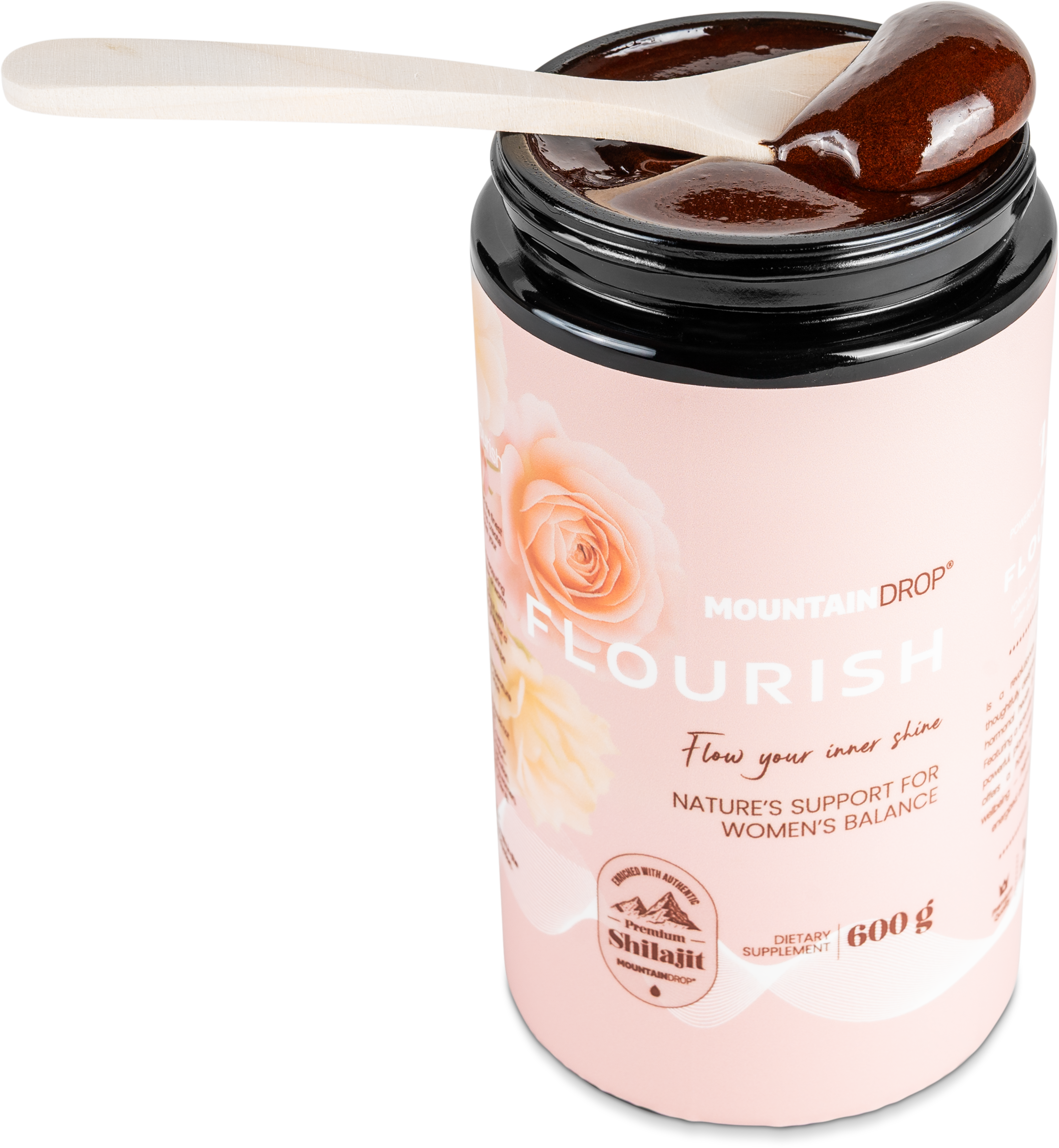 Flourish de Mountaindrop combina shilajit premium con 13 ingredientes seleccionados en una base natural de miel eslovena. La formulación se basa en una matriz equilibrada de ashwagandha KSM-66® y ginseng coreano, enriquecida con extractos vegetales tradicionalmente valorados como shatavari, sauzgatillo y trébol rojo. La mezcla se completa con una combinación de magnesio, zinc y vitaminas B6 y D3, integrados armoniosamente en la estructura de la miel. Gracias a un procesamiento delicado sin tratamiento térmico, se preservan las propiedades naturales de las materias primas en su calidad original.