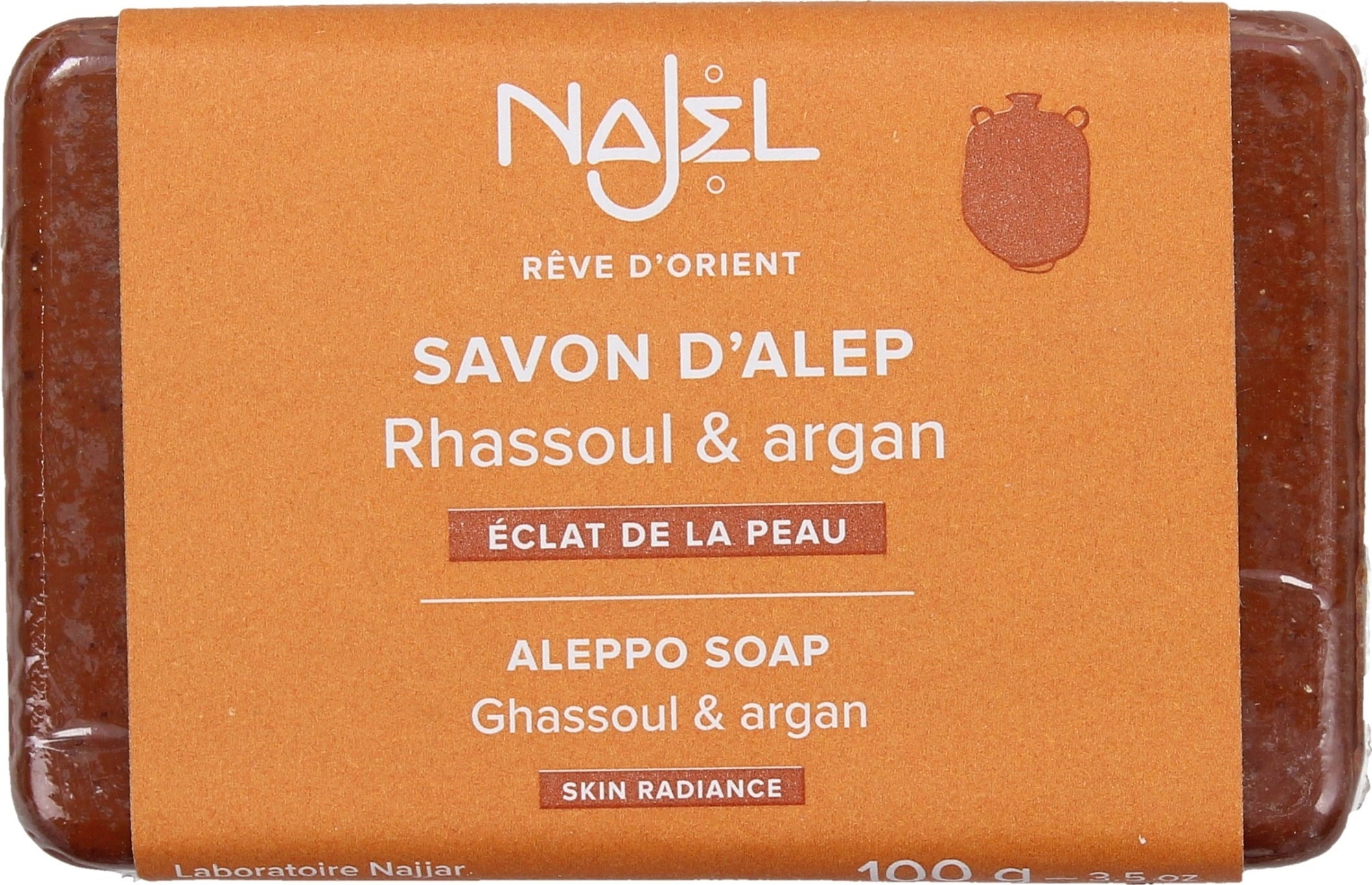Najel Jabón de Alepo - Aceite de Argán & Rhassoul, 100 g