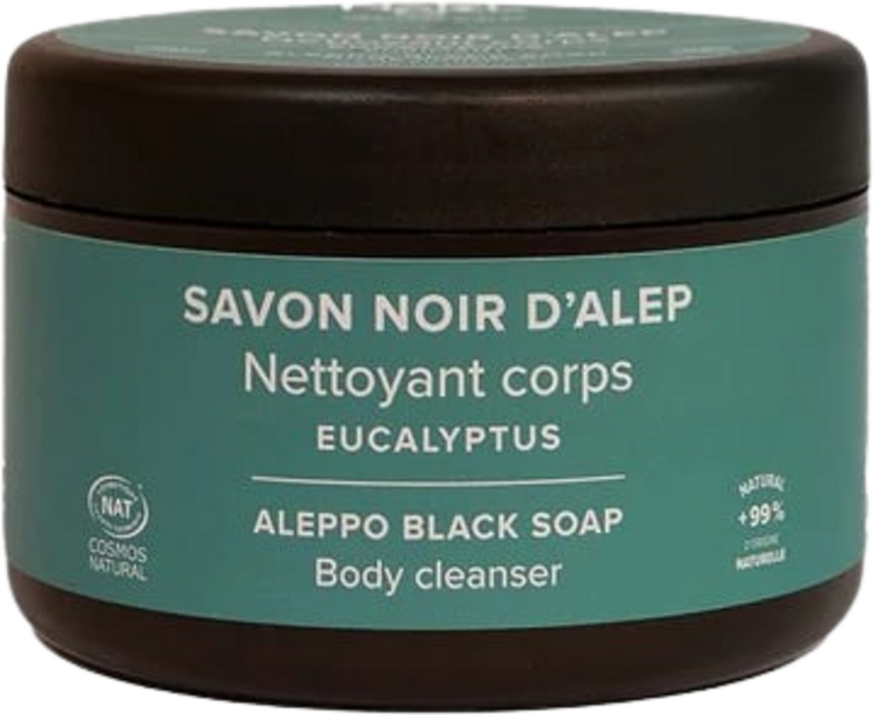 El jabón negro de Alepo tiene una larga tradición en los baños de vapor orientales. Es el secreto de una piel radiante y suave, y tiene la ventaja añadida de las propiedades revitalizantes y clarificantes del aceite esencial de eucalipto. Se recomienda una exfoliación semanal para una piel óptimamente nutrida.