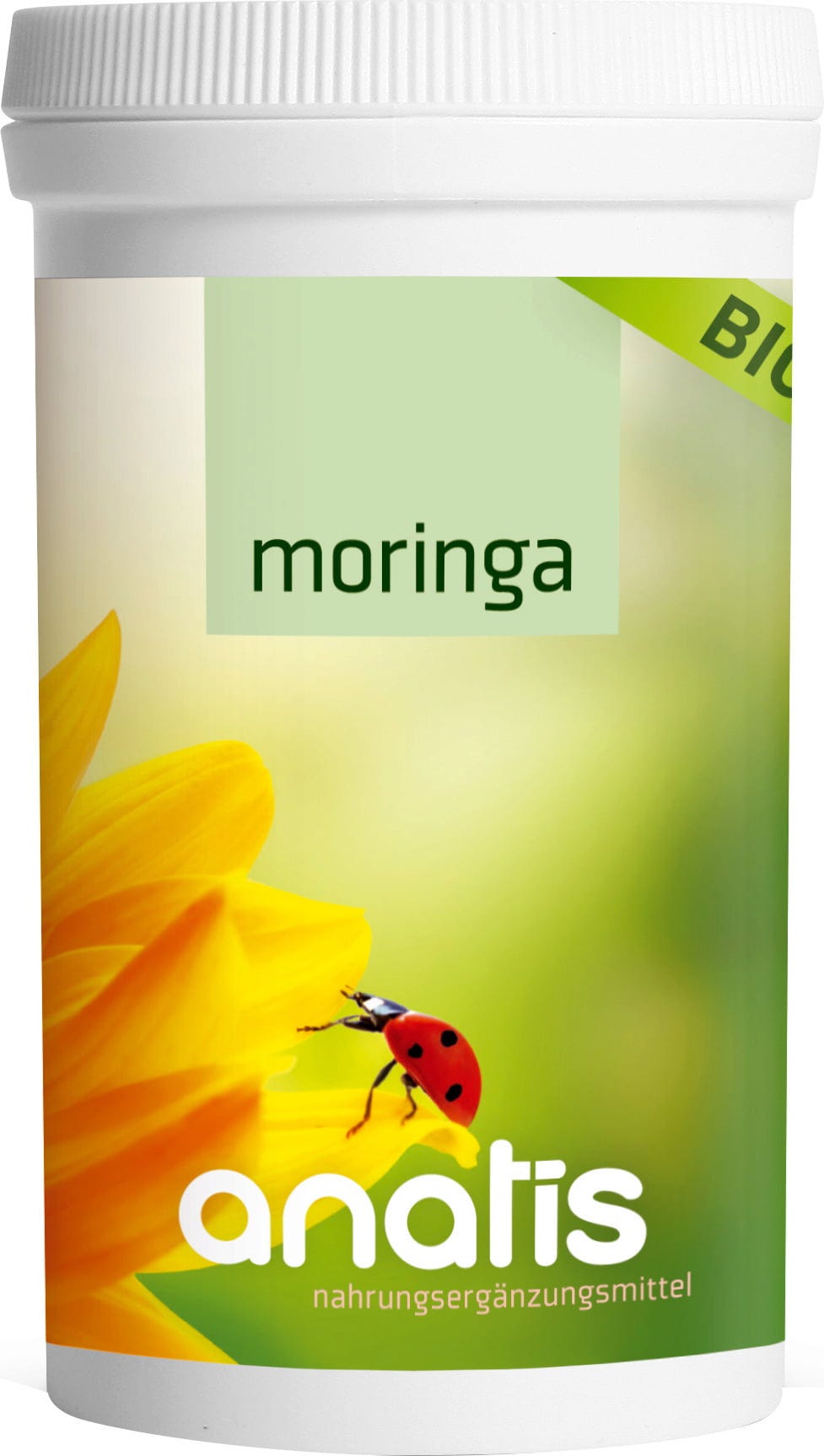 La Moringa Oleifera es conocida como el "árbol de la vida". Sus hojas se encuentran entre los alimentos más nutritivos del mundo y son ricas en vitaminas, minerales y todos los aminoácidos esenciales. Las cápsulas de anatis son 100% veganas y están encapsuladas a mano sin aditivos.