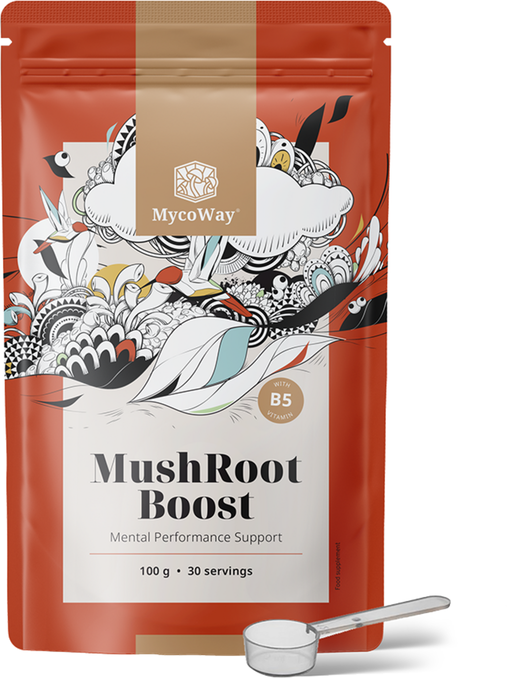 Este polvo para bebidas ofrece una combinación estudiada de tres extractos de hongos seleccionados y sustancias vegetales como maca, yerba mate, rodiola y ginseng. Concebido como alternativa al café tradicional, te acompaña de forma constante durante todo el día. La vitamina B5 que contiene contribuye al rendimiento mental normal y a la reducción del cansancio y la fatiga.