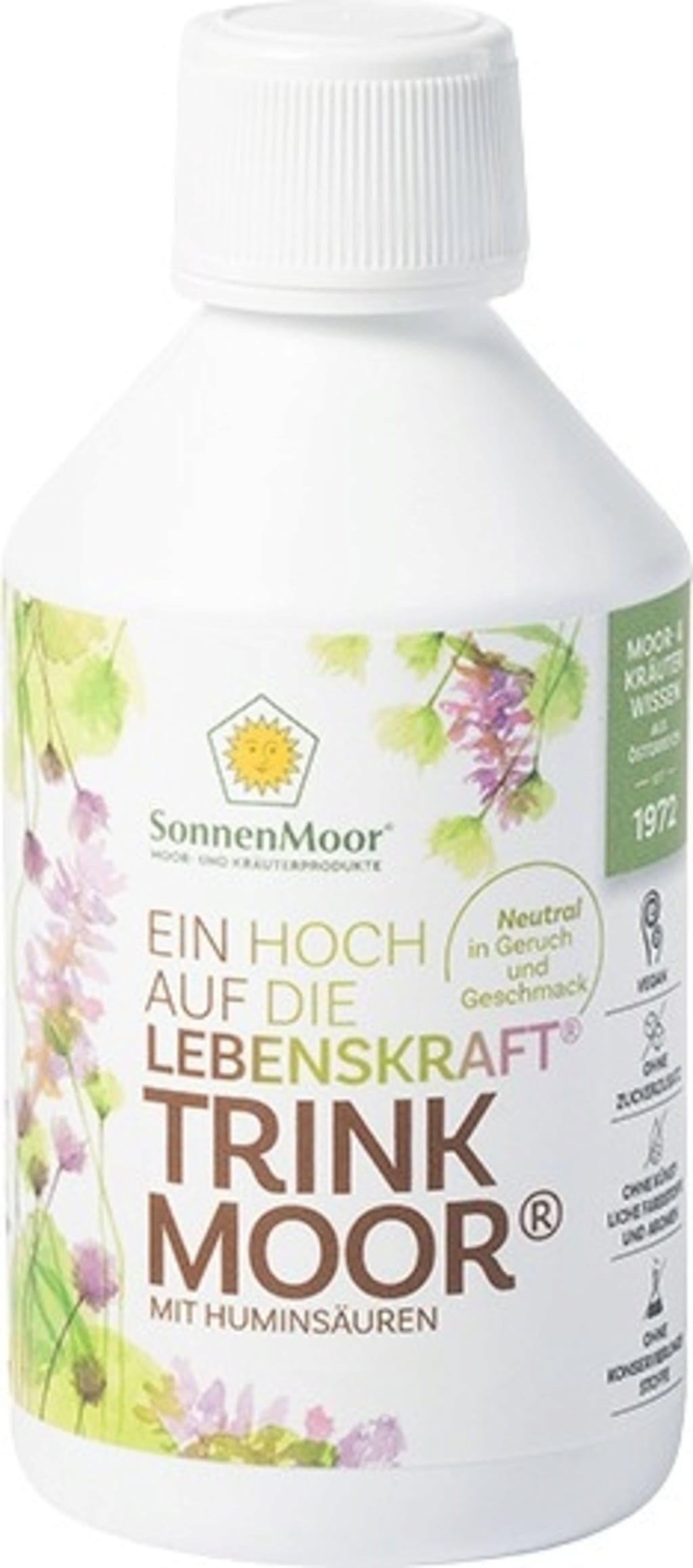 El turba para beber de SonnenMoor se basa en una capa de alta calidad de la turbera Leopoldskron, cerca de Salzburgo. Se trata de un producto neutro en cuanto a olor y sabor, formado a lo largo de milenios a partir de una gran variedad de hierbas. En la sustancia seca, este producto natural puro presenta un contenido del 29 % de ácidos húmicos.