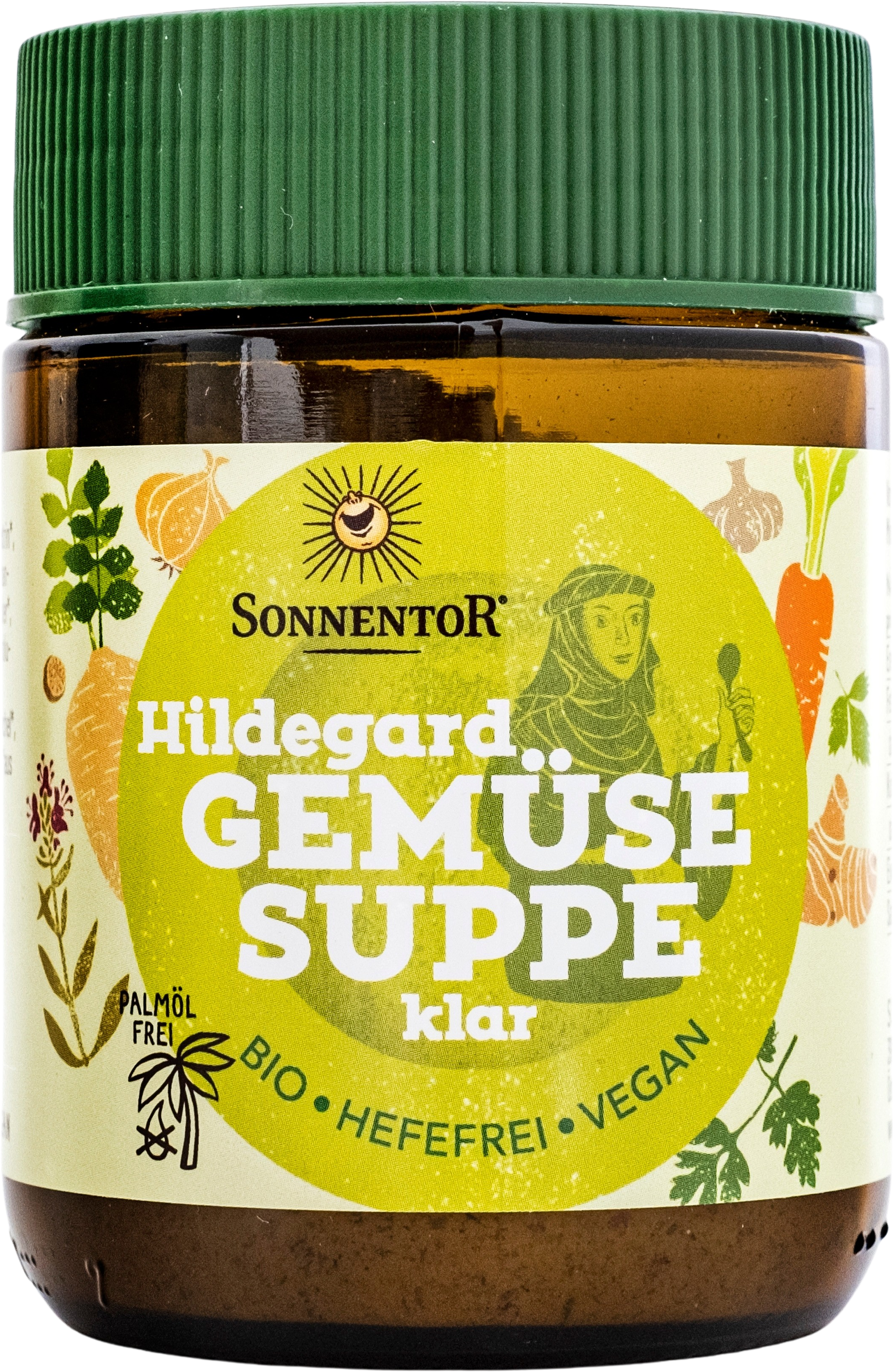 El caldo de verduras contiene sólo las mejores verduras maduras como zanahorias o chirivías y se hace más sabroso con especias Hildegard seleccionadas como hisopo y galanga.