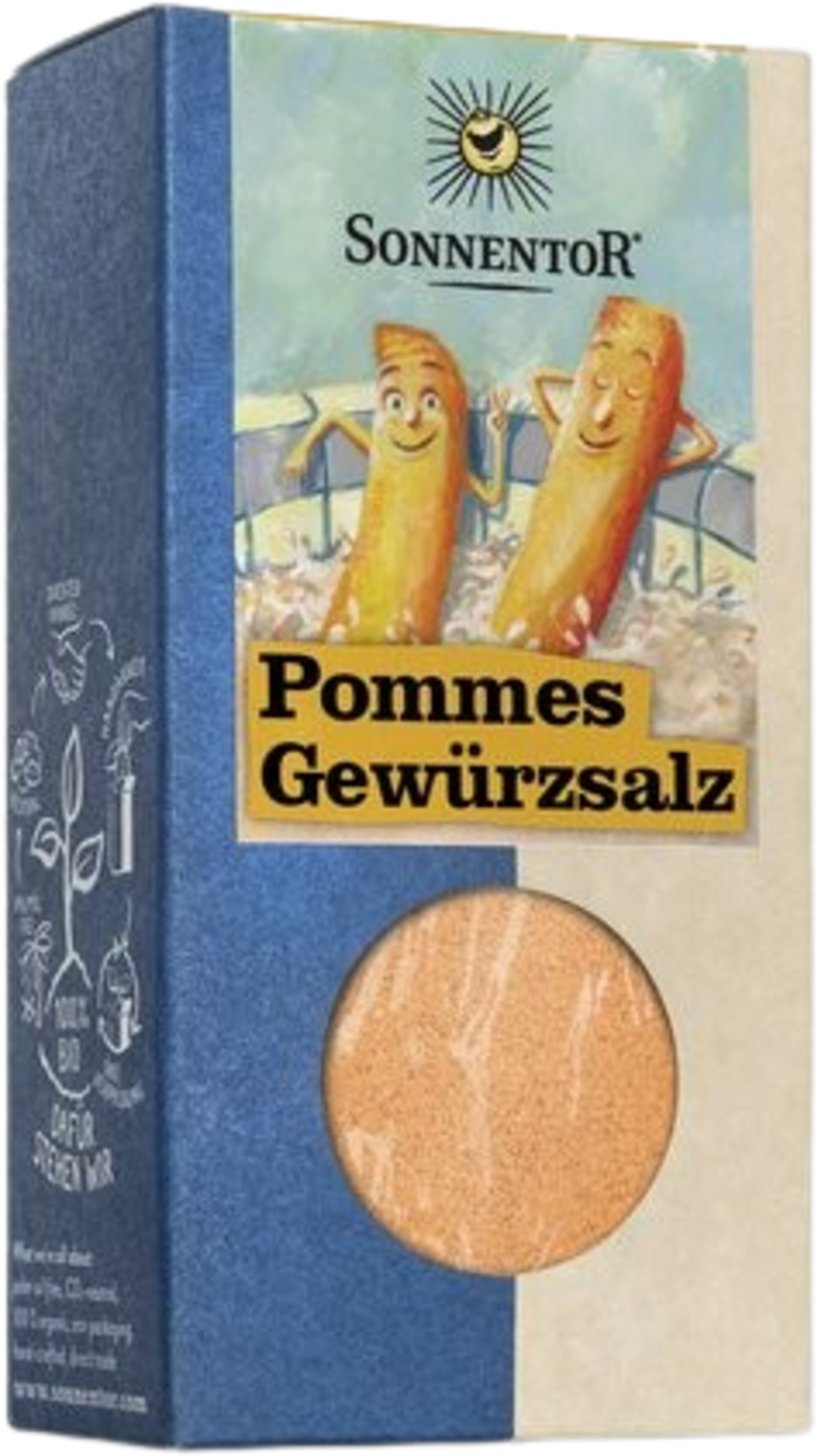 Las patatas fritas son sencillamente irresistibles. Ya sea como guarnición o incluso solas como refrigerio, a todo el mundo le encantan las patatas fritas. En esta mezcla, Sonnentor combina sal marina con diferentes especias como romero, pimentón dulce, cúrcuma y ajo, en una mezcla que realza el sabor de las patatas fritas. La mezcla también se puede utilizar para condimentar salsas o platos de pollo.