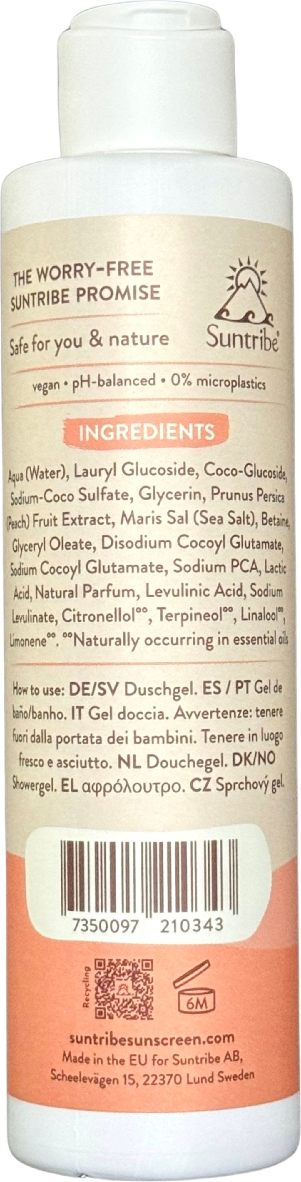 Aqua, Lauryl Glucoside, Coco Glucoside, Sodium Coco Sulfate, Glycerin, Prunus Persica (Peach) Fruit Extract, Maris Sal, Betaine, Glyceryl Oleate, Disodium Cocoyl Glutamate, Sodium Cocoyl Glutamat, Sodium Pca, Lactic Acid, Aroma, Levulinic Acid, Sodium Levulinate, Citronellol[1], Terpineol[1], Linalool[1], Limonene[1]